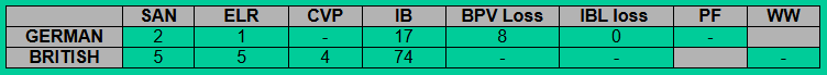 458 x12, LMG x3, Lt MTR x3, 9-1 x2, 7-0