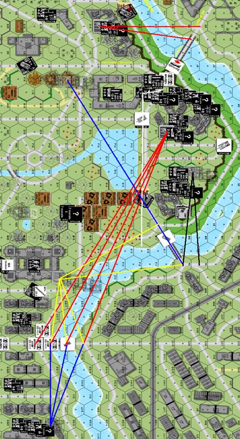 838 FT CC19 – this guy can not be seen from across the river but if he manages to cross the Marschall bridge and tries to take refuge in any of the buildings near the exit (CC18, DD19,DD20) he can FT them point blank back to the motherland.