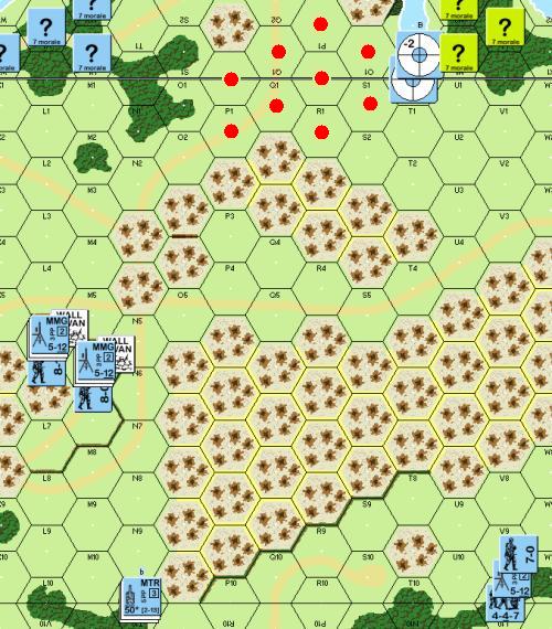2. I shall be making a major thrust down the centre of the board. These troops will be aiming for the area between 19O-S and consists of 8-0, 6x 447, MMG, LMG, 2x 237. I will not be CX-ing them as these guys are going to have be doing the job of stopping any attempts he makes to reinforce the West with his mass of Eastern troops.