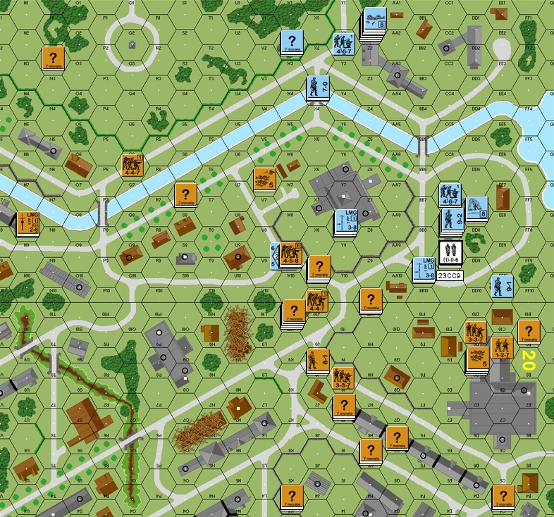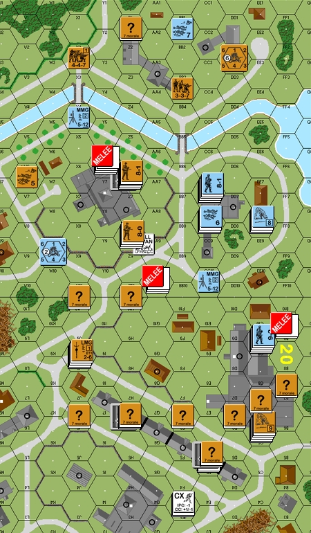 The Russians must start on Bd. 23 with a maximum of 1 MMC per hex. After the German Rally Phase all the Russian MMC must make a NMC and I have noted the results of those rolls next to them.
