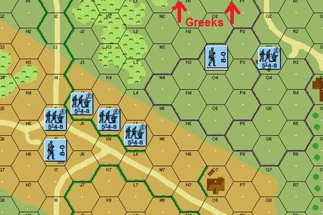 1. Rout is difficult for the Greeks – In the initial part of the game the Greeks must setup right between the 2 German positions, this can allow the Germans to exploit the Direction of Rout rules to force the Greeks to lose time, cohesion and possibly even units.